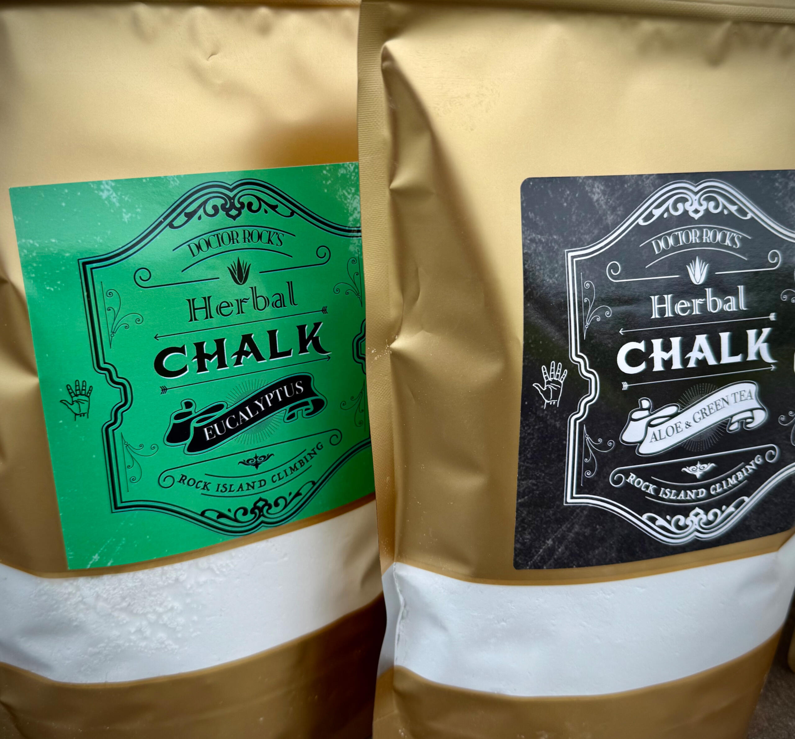 Doctor Rock is unique in terms of both how it is made (handmade in small batches), how it smells (light and refreshing, not overwhelming), and how it feels (some smaller pieces for crunching and some powdery stuff for quick chalk-ups).The price point of Doctor Rock Herbal Chalk makes it more affordable than other designer chalks.