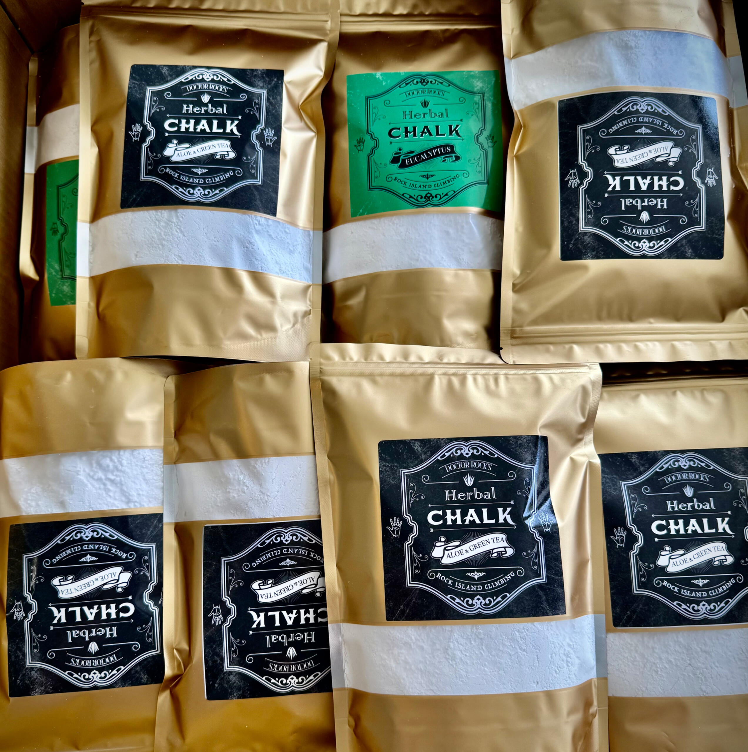 Doctor Rock Herbal Chalk originated as Signature chalk in 2013. The original concept was to create a smooth-feeling, comfortable chalk, that had all the beloved properties of regular climbing chalk but lightly scented to make it different (and to offset the typical dirty-climber smell.) After much r&d, the best method and combination became clear. That original concept developed into what is now Doctor Rock's Herbal Chalk.